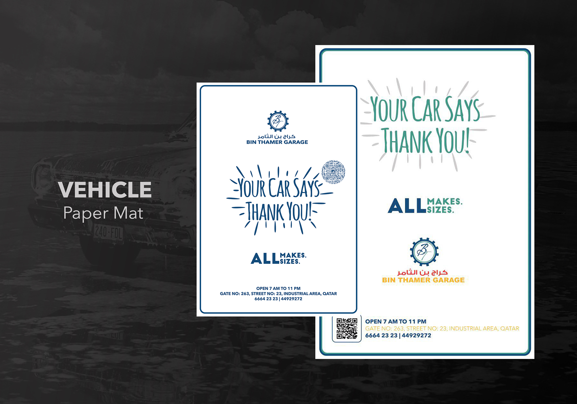 Bin Thamer Garage is one of the largest in Qatar. Located at Street 23 of the New Industrial Area, this brand can service vehicles of All Makes and Sizes. Whatever be the issue for your vehicle, just give them a call and they'll look into it. Pulleys' is proud to be working on all their online and offline design materials.